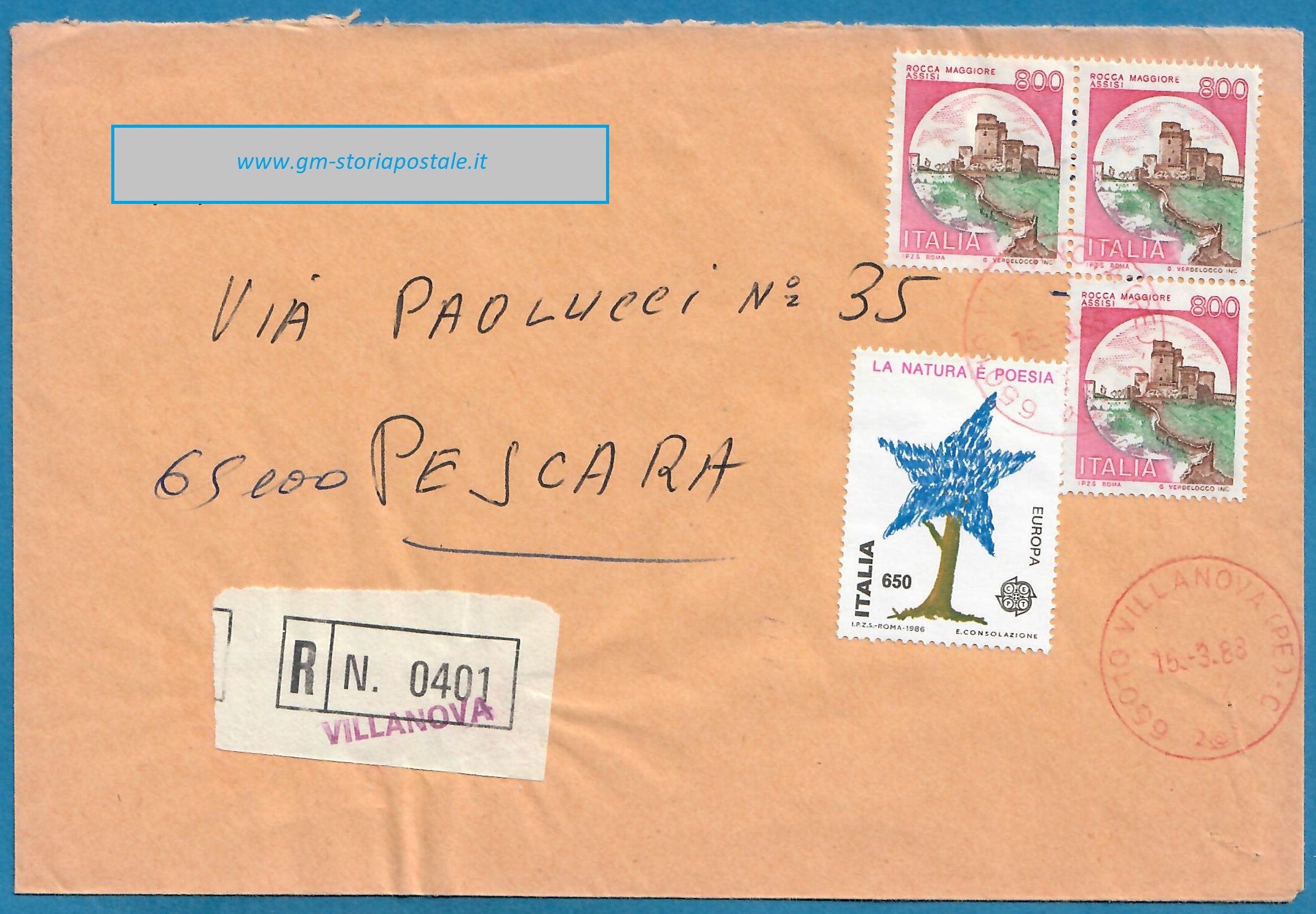 650 lire Protezione della Natura 1986 + 3 x 800 lire Castelli d’Italia – Villanova, 15 marzo 1988: