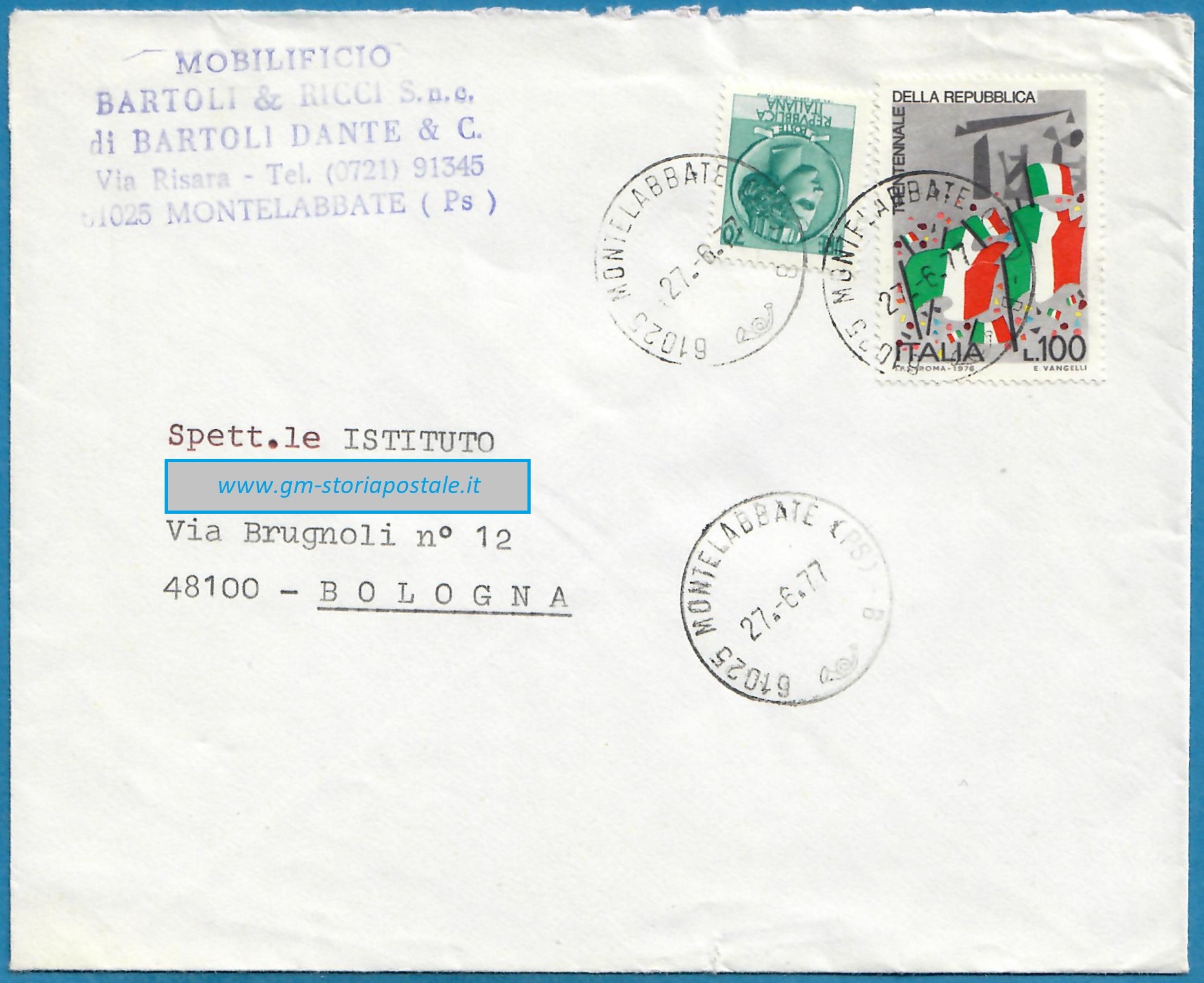 100 lire Trentennale della Repubblica + 70 lire Siracusana – Montelabbate, 27 giugno 1977: