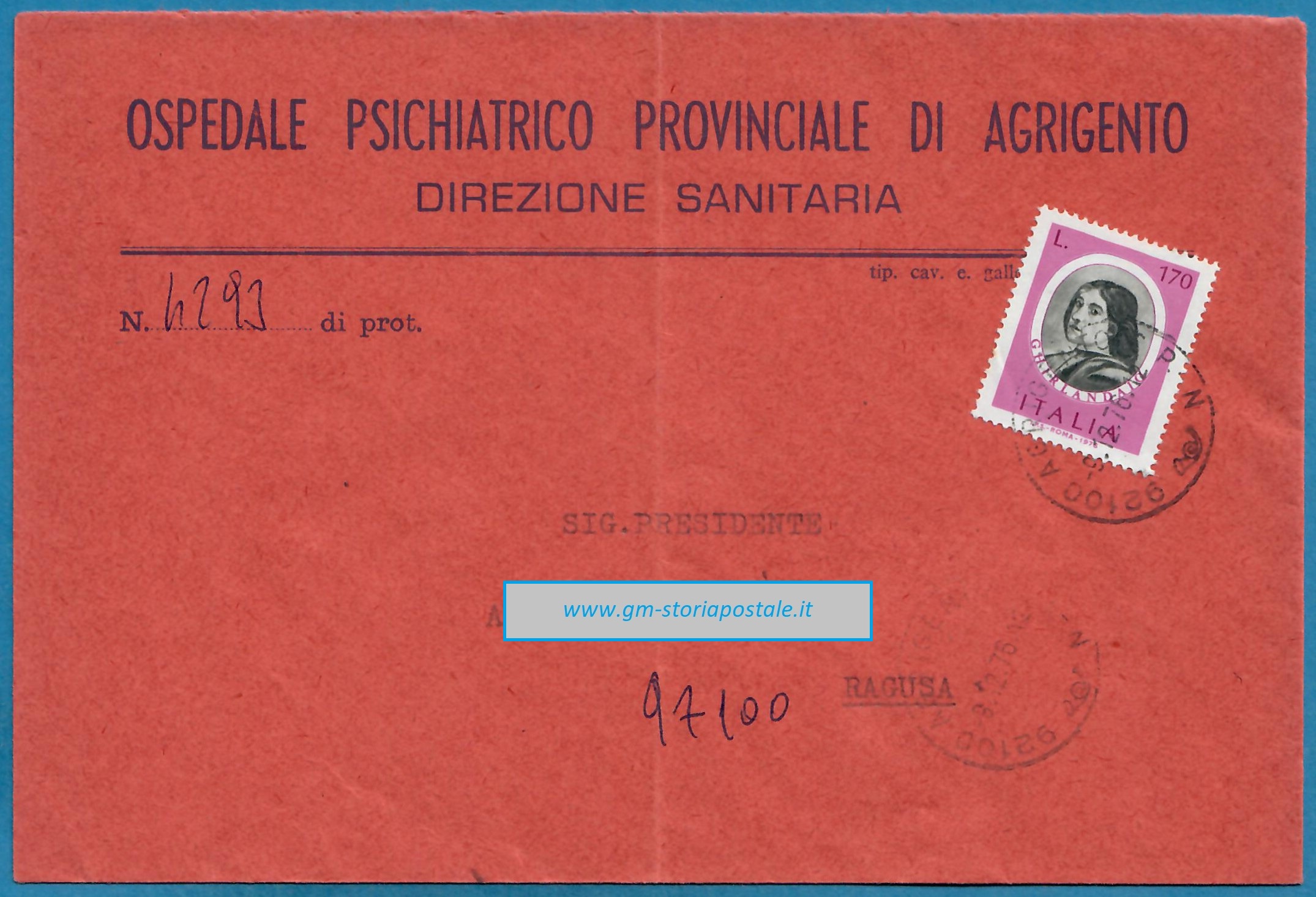170 lire Carlo Dolci isolato – annullo con targhetta di Ragusa, 10 dicembre 1976: