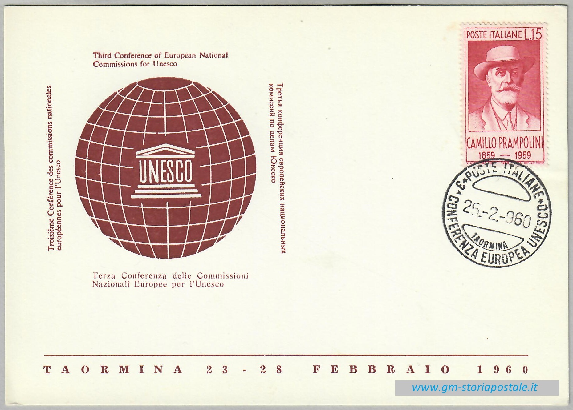 Il francobollo commemorativo da 15 lire dedicato al centenario della nascita di Camillo Prampolini fu emesso il 27 aprile 1959 e restò valido fino al 31 dicembre 1960, per un totale di un anno e otto mesi. In occasione del giorno di emissione fu in uso a Reggio Emilia un annullo speciale.