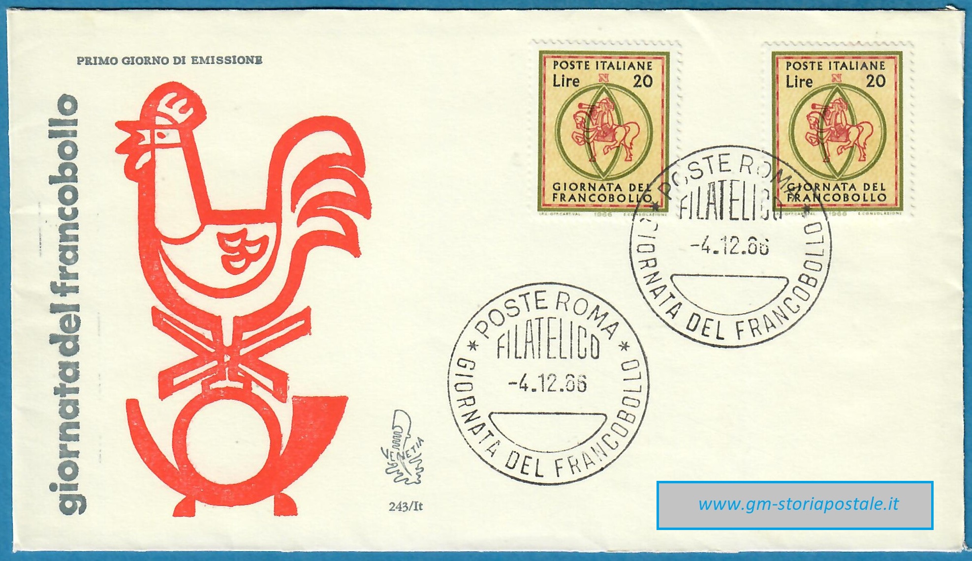 Il francobollo commemorativo da 20 lire dedicato alla Giornata del Francobollo del 1966 fu emesso il 4 dicembre 1966 con validità permanente. In occasione dell’emissione fu in uso in tutti i capoluoghi di provincia il consueto bollo speciale in uso anche negli anni precedenti e successivi.