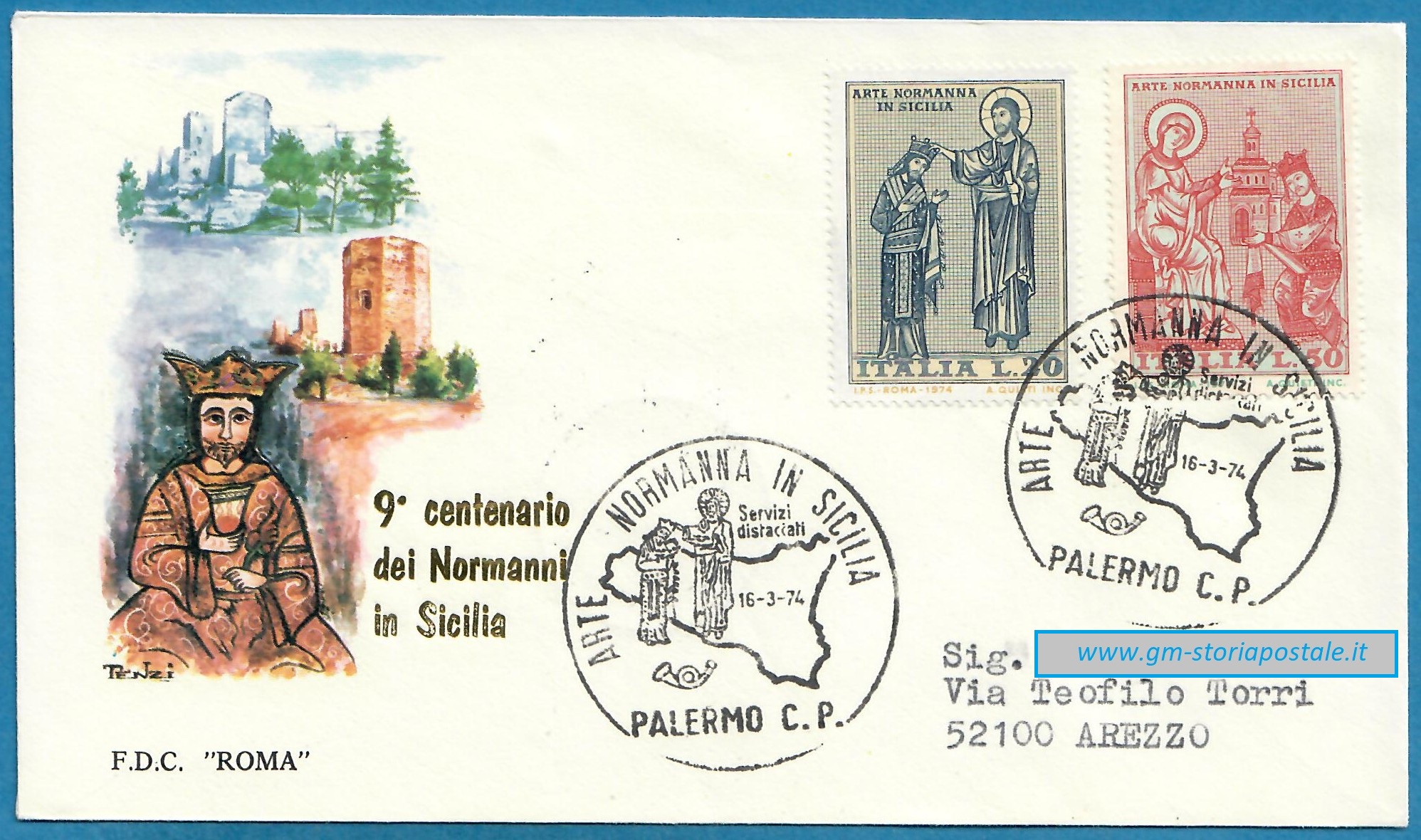 Il francobollo commemorativo da 20 lire della serie dedicata all’Arte Normanna in Sicilia fu emesso il 16 marzo 1974 con validità permanente. In occasione dell’emissione fu in uso a Palermo un bollo speciale.