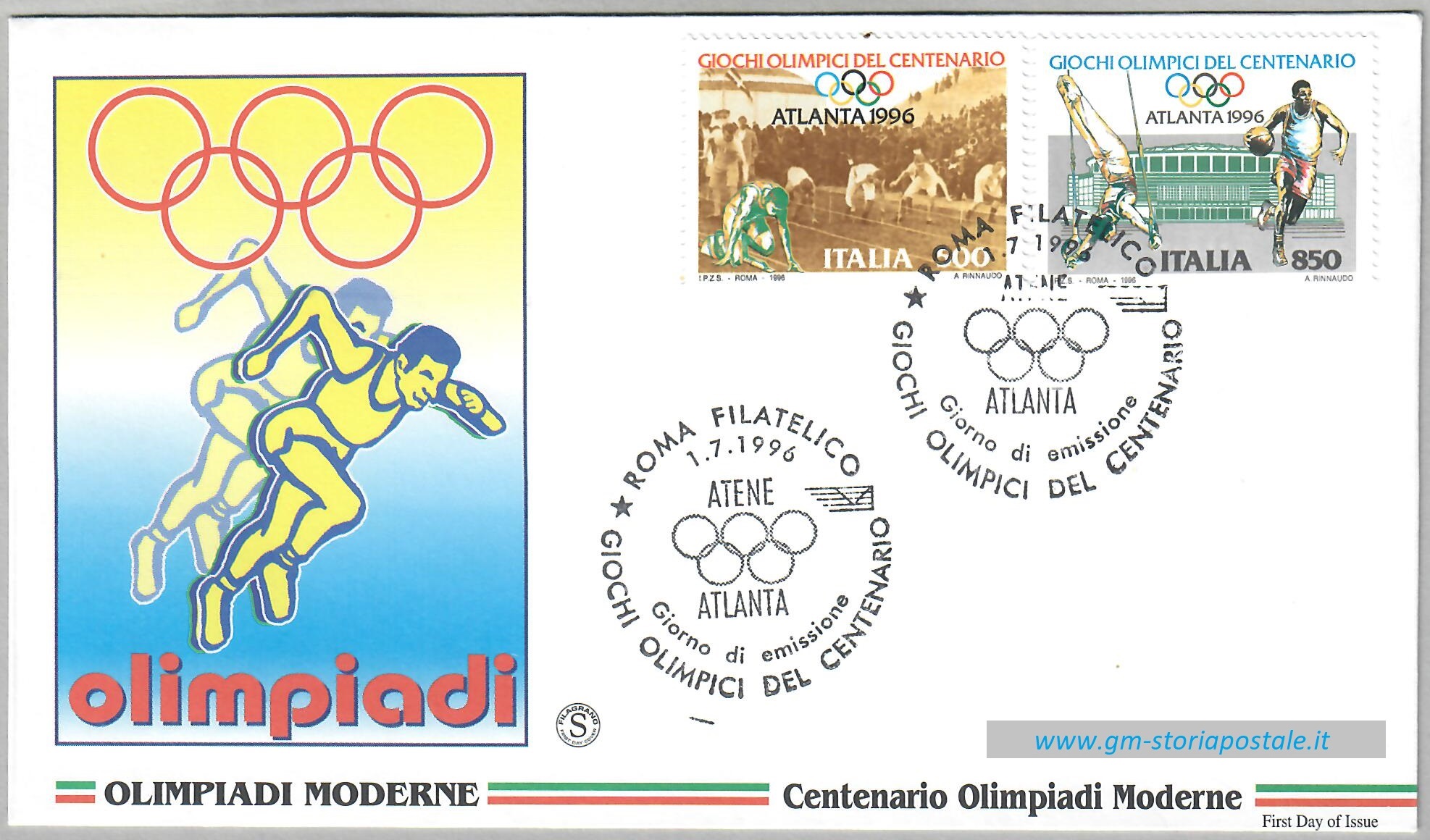 Il francobollo commemorativo da 850 lire della serie dedicata ai Giochi Olimpici del Centenario fu emesso il 1° luglio 1996 con validità permanente. L’annullo speciale per il primo giorno di emissione fu in uso a Roma.
