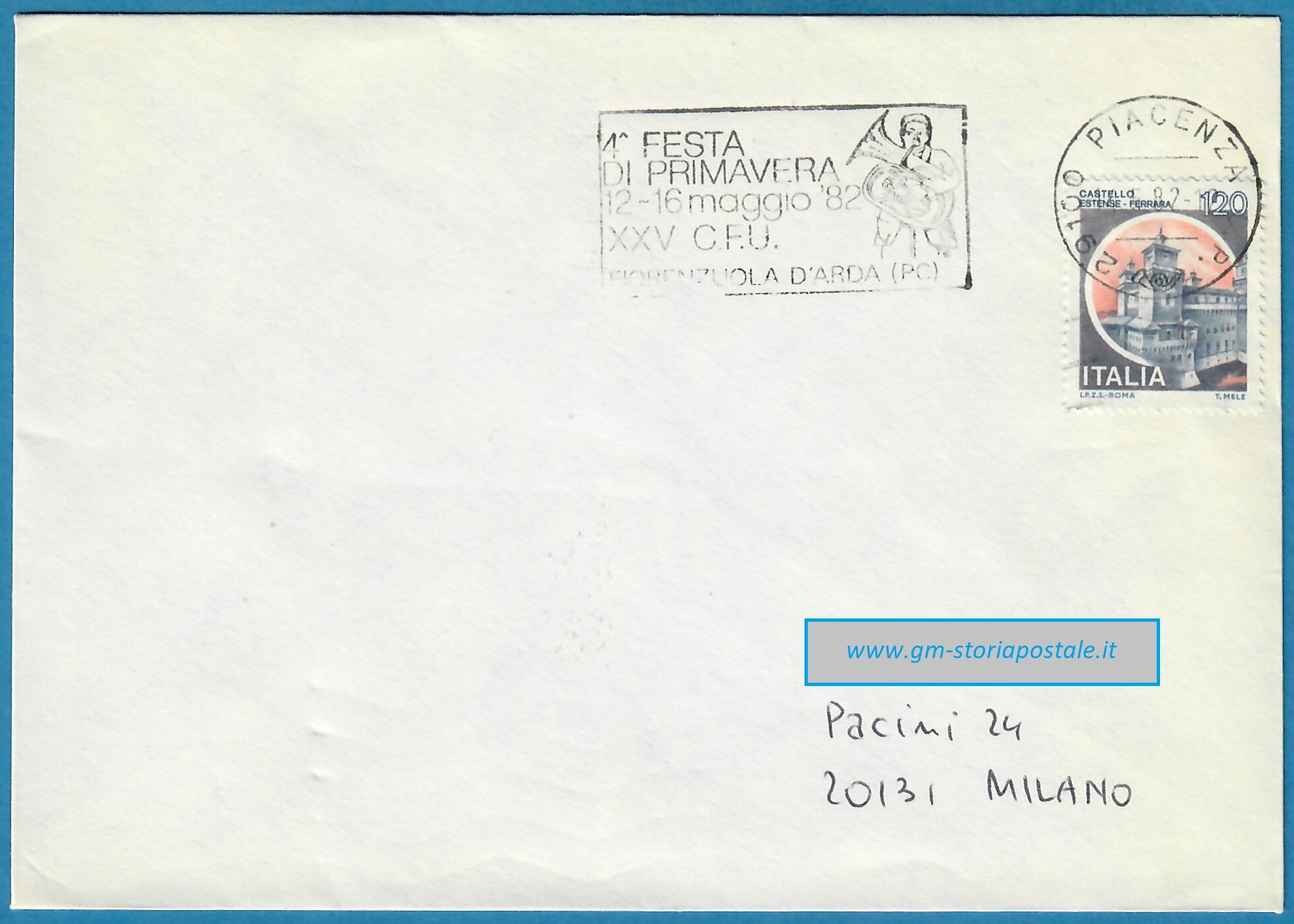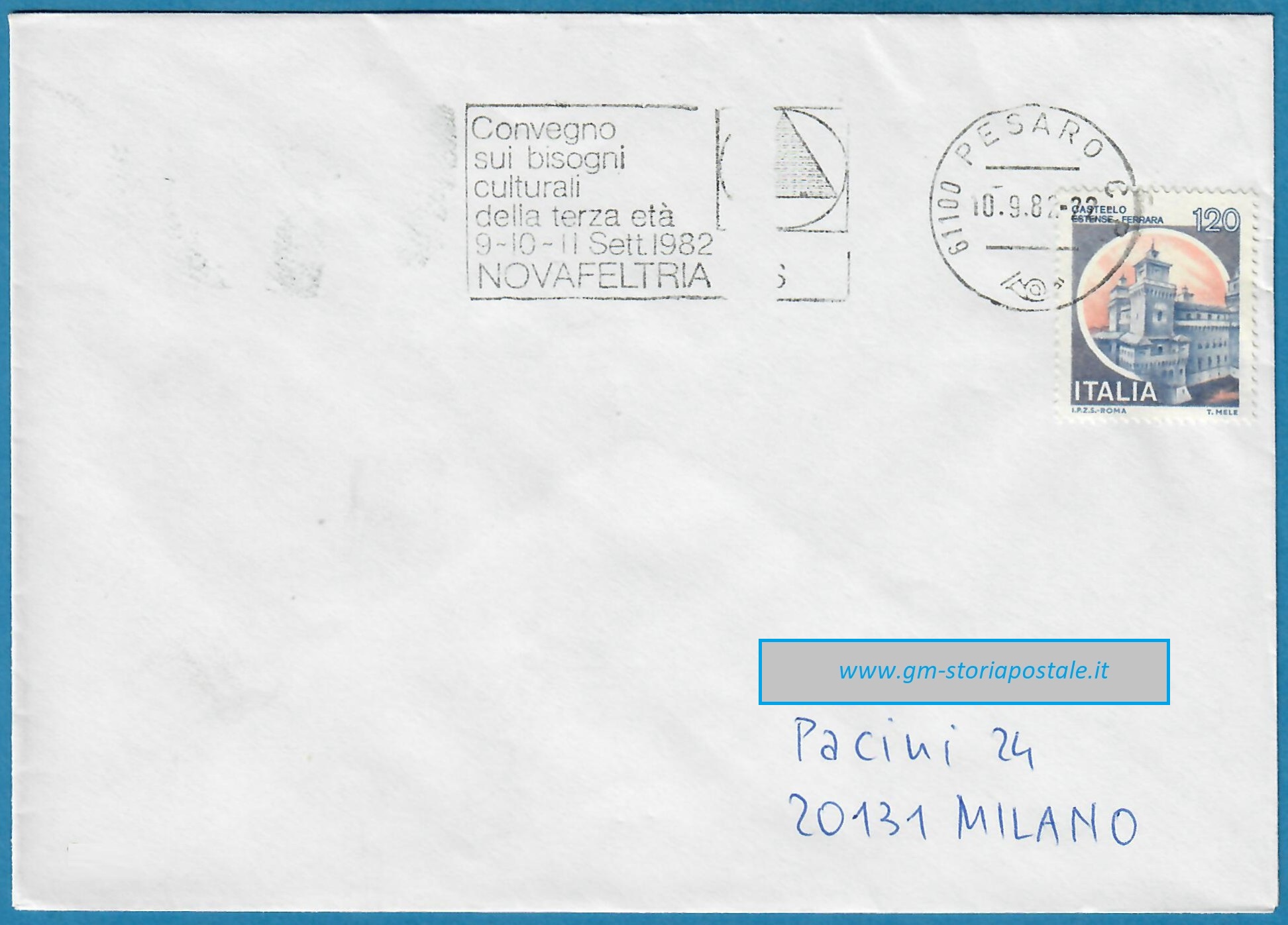 In questa sottopagina sono riportati esemplari di stampe affrancate con il 120 lire Castelli d’Italia annullato con una targhetta.