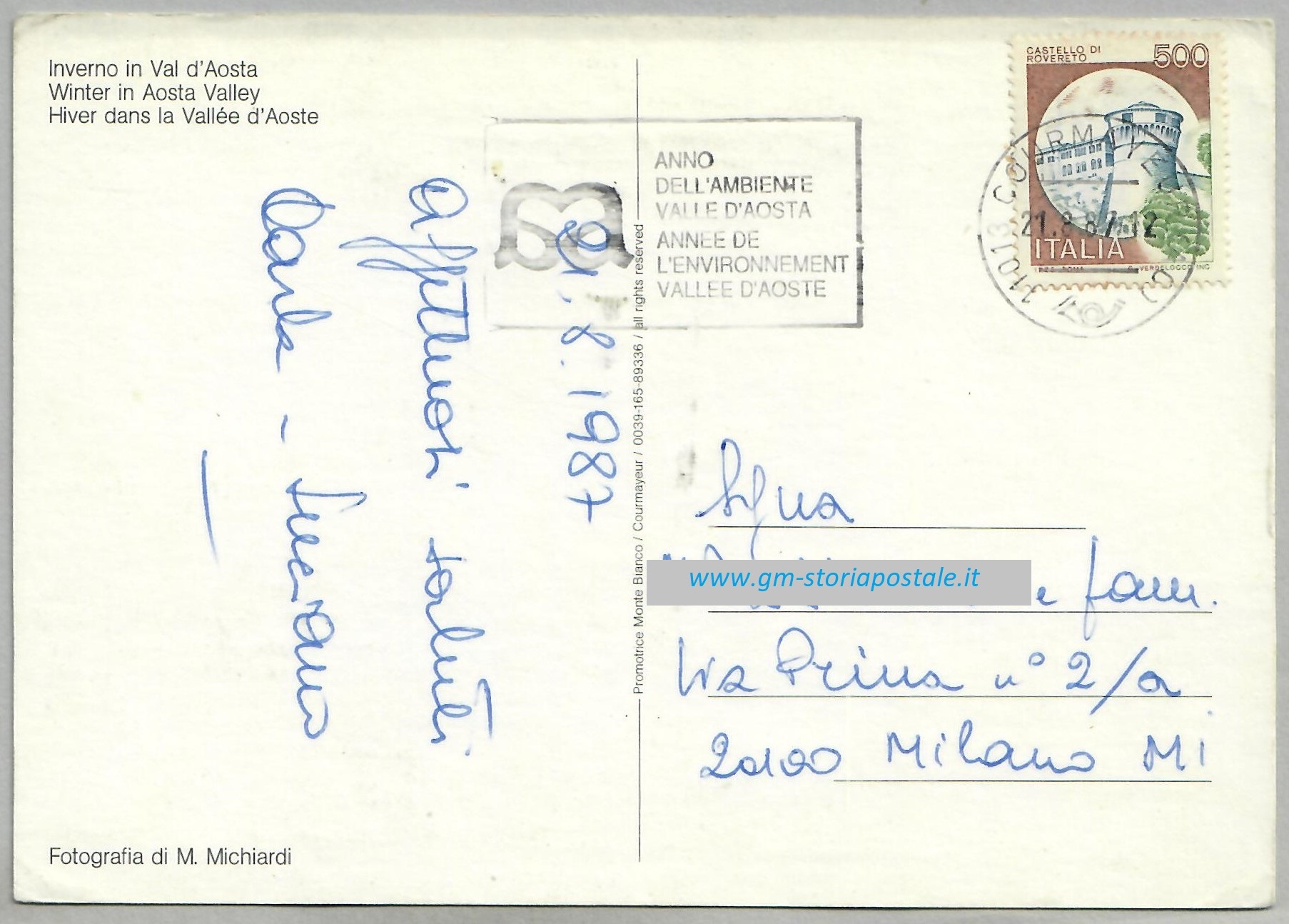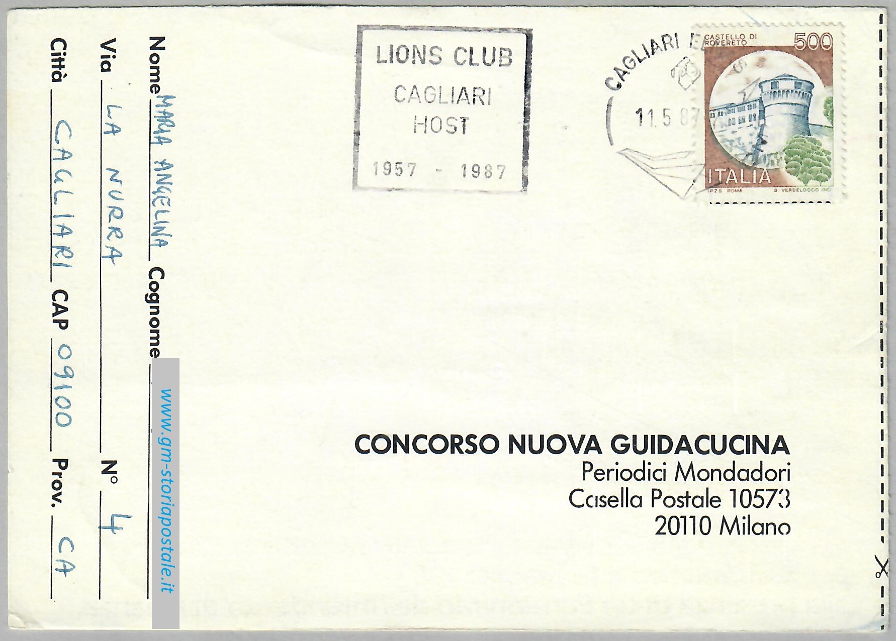 In questa sottopagina sono riportati esemplari di cartoline affrancate con il 500 lire Castelli d’Italia isolato annullato con una targhetta.