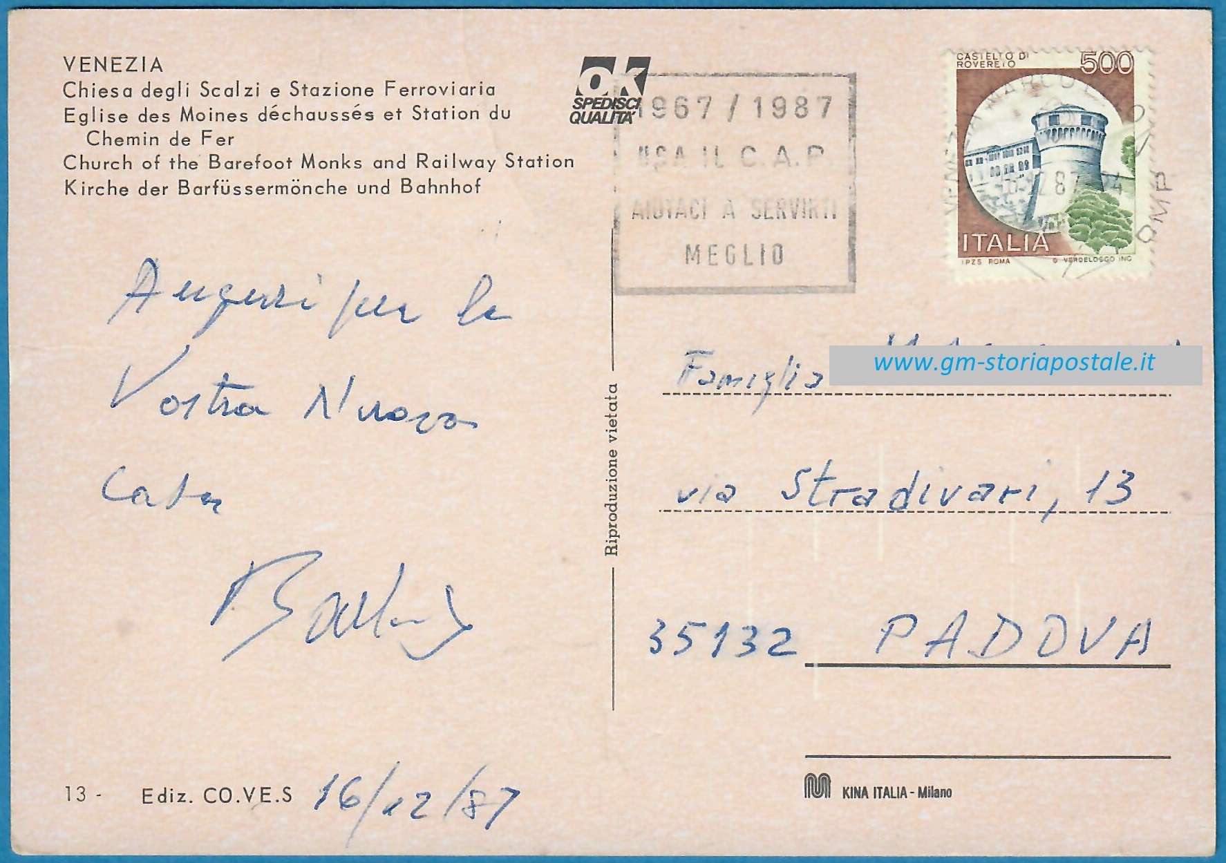 Cartoline generiche (illustrate o no), viaggiate tra 16.11.1986 e 29.2.1988: