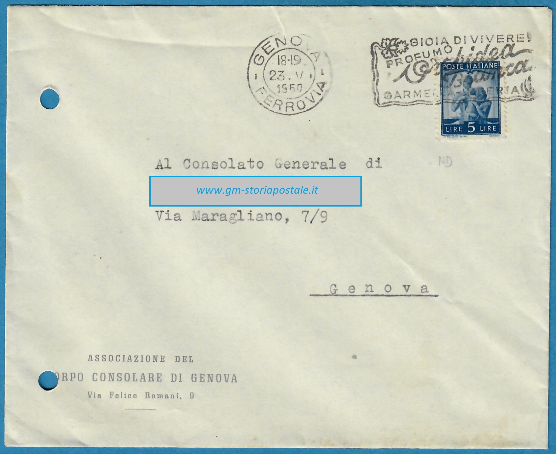 In questa sottopagina sono riportati esemplari di stampe affrancate con il 5 lire Democratica annullato con una targhetta.