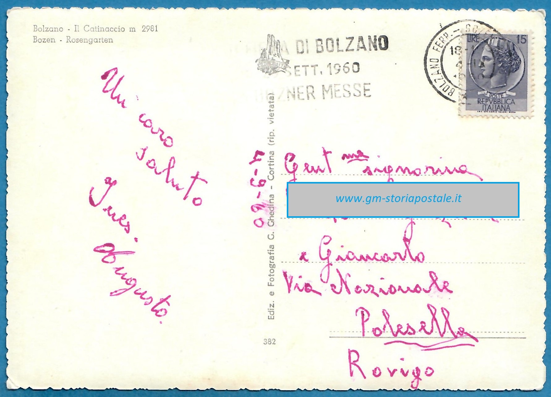 In questa sottopagina sono esposti esemplari di cartoline illustrate con testo inferiore a cinque parole di convenevoli affrancate con il 15 lire Siracusana con filigrana stelle del I tipo con disposizione verticale annullato con una targhetta. Il francobollo con filigrana stelle verticale fu prodotto sia per la vendita tramite le macchinette distributrici sia in fogli da 600 esemplari (6 x 100) al posto dei fogli da 4 x 100 normalmente prodotti per gli altri valori. I due francobolli (bobina o foglio) sono indistinguibili sciolti come negli esempi sotto ripostati.
