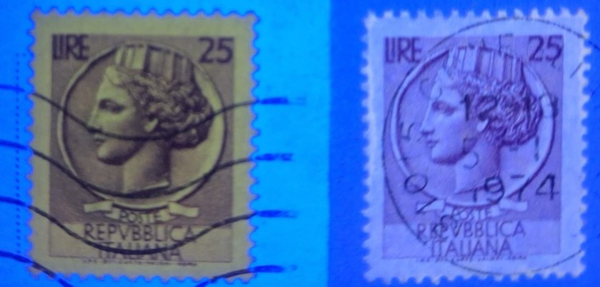 L’esemplare sotto riportato fu spedito da Conegliano il 5 gennaio 1974 per Venezia. Fluorescenza candida.