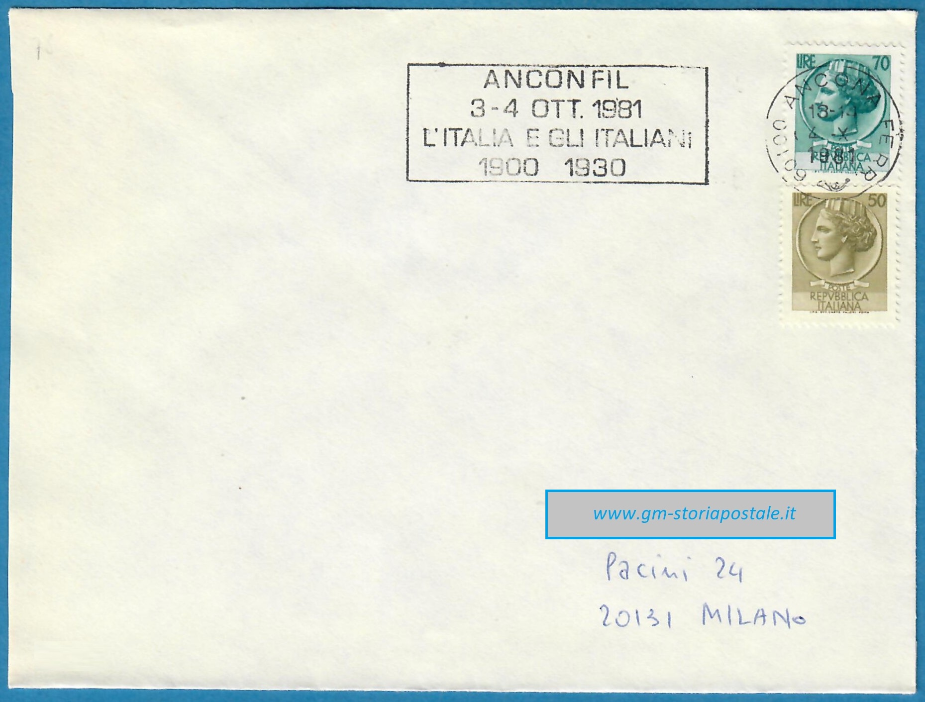In questa sottopagina sono riportati esemplari di stampe affrancate con il 70 lire Siracusana fluorescente integrato con 50 lire e annullato con una targhetta.