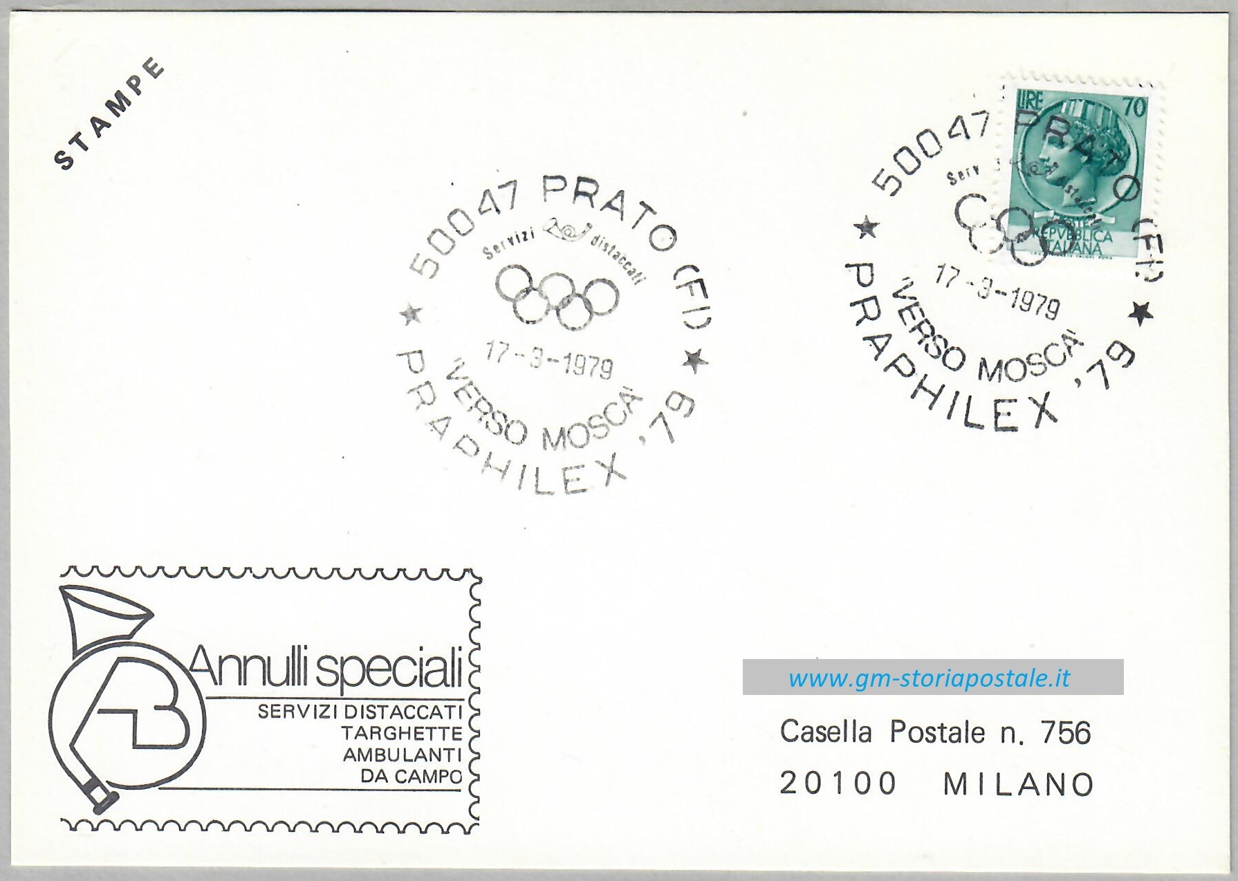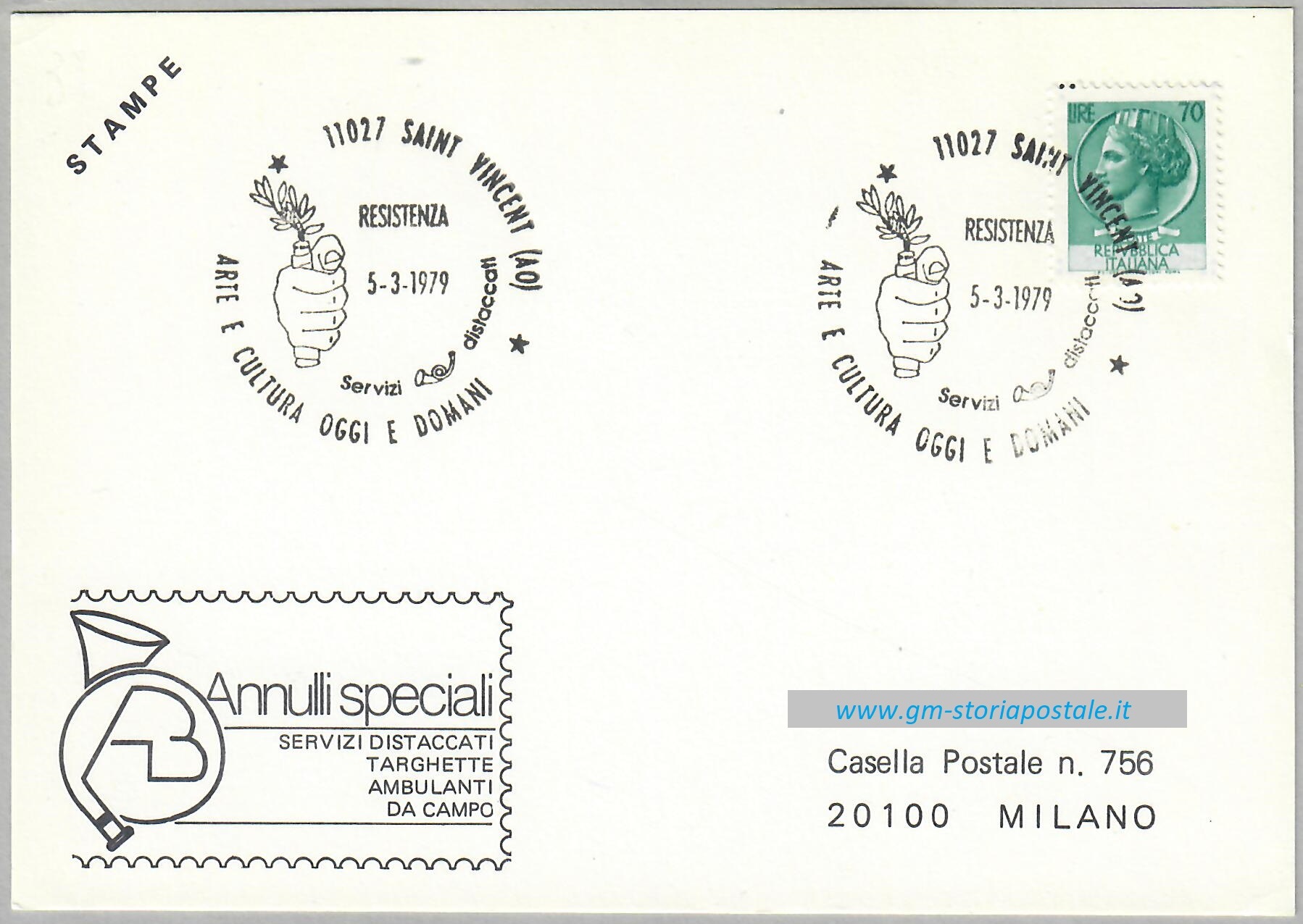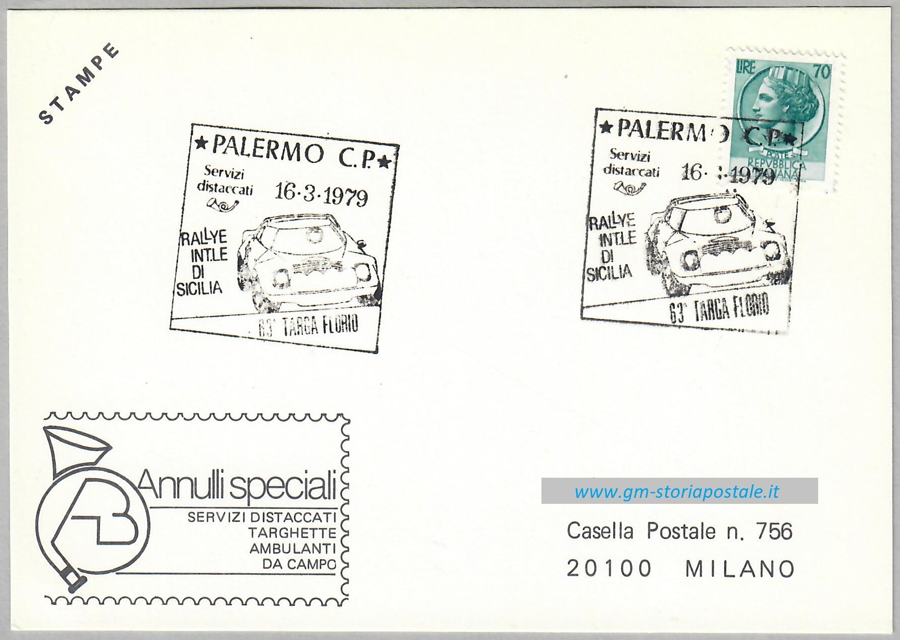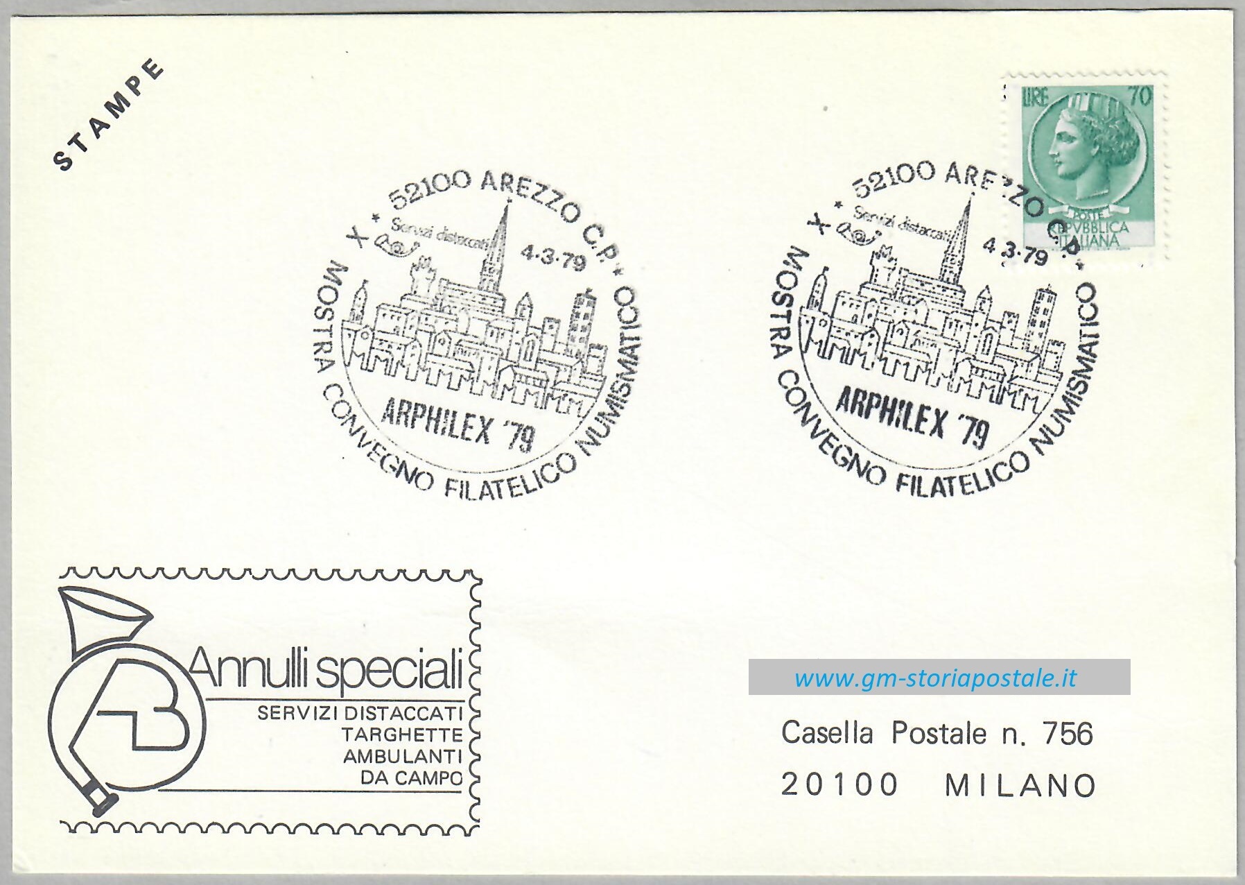 In questa sottopagina si trovano stampe affrancate con il 70 lire Siracusana fluorescente (fluorescenza candida) annullato con un bollo speciale nel marzo 1979.