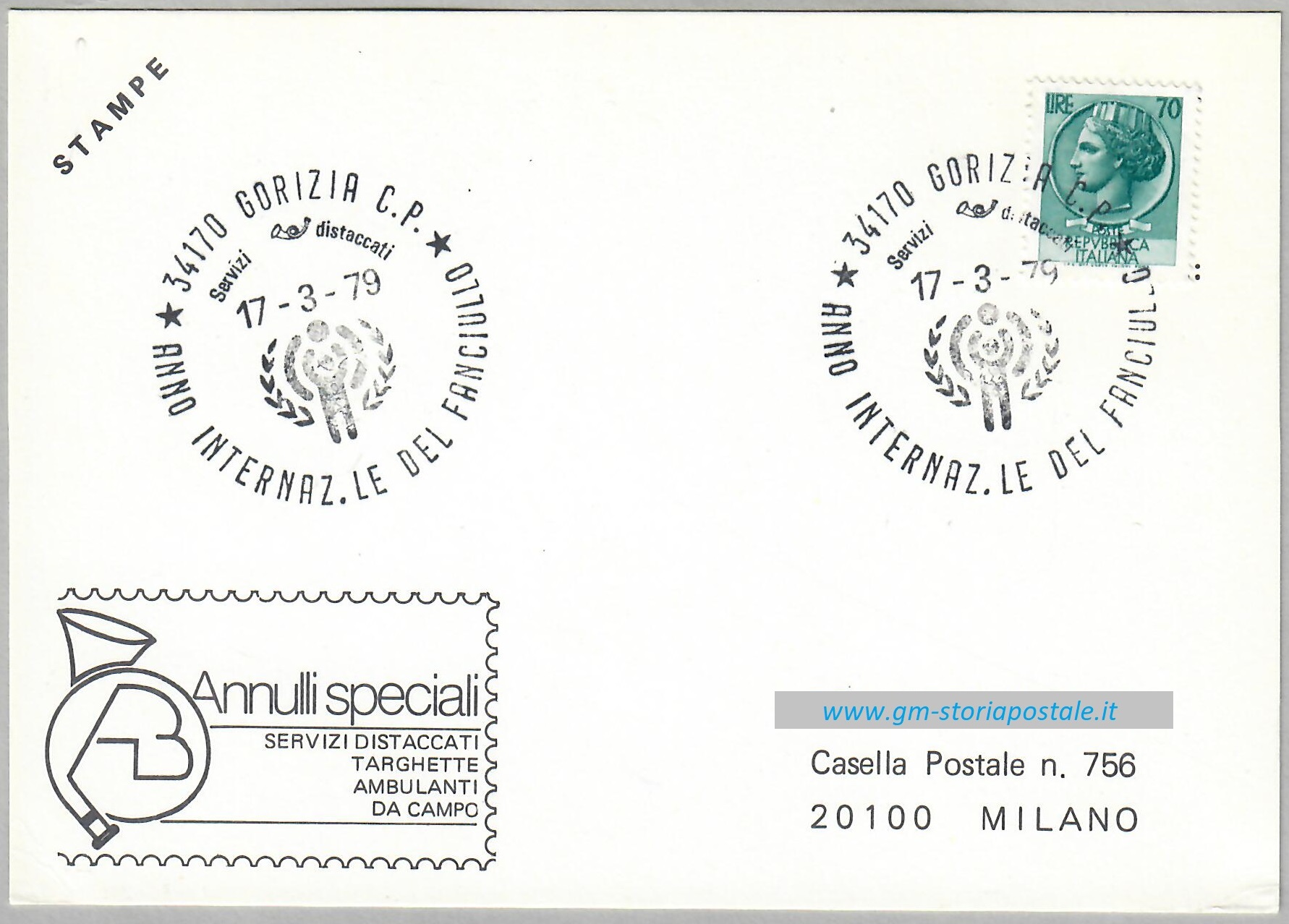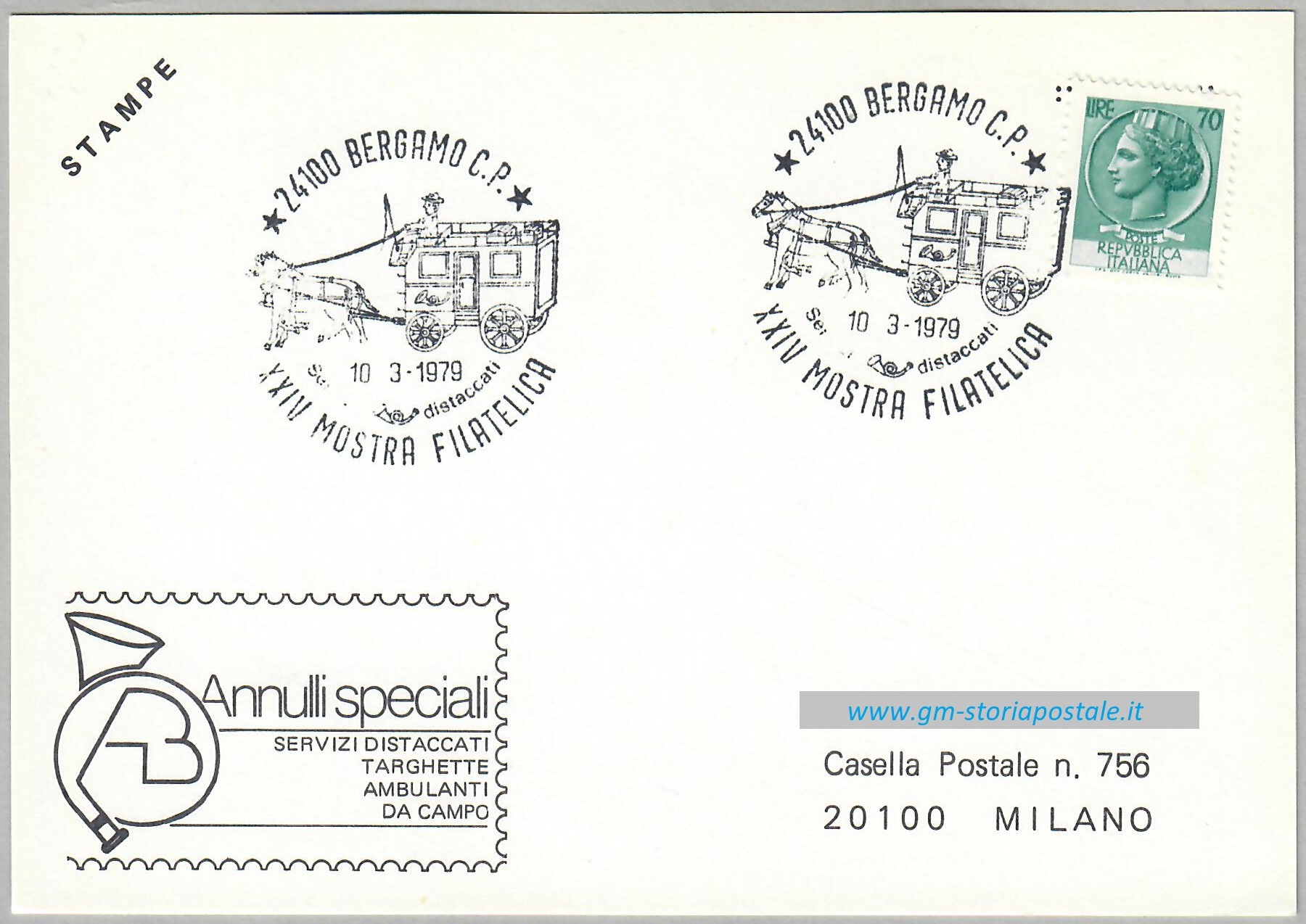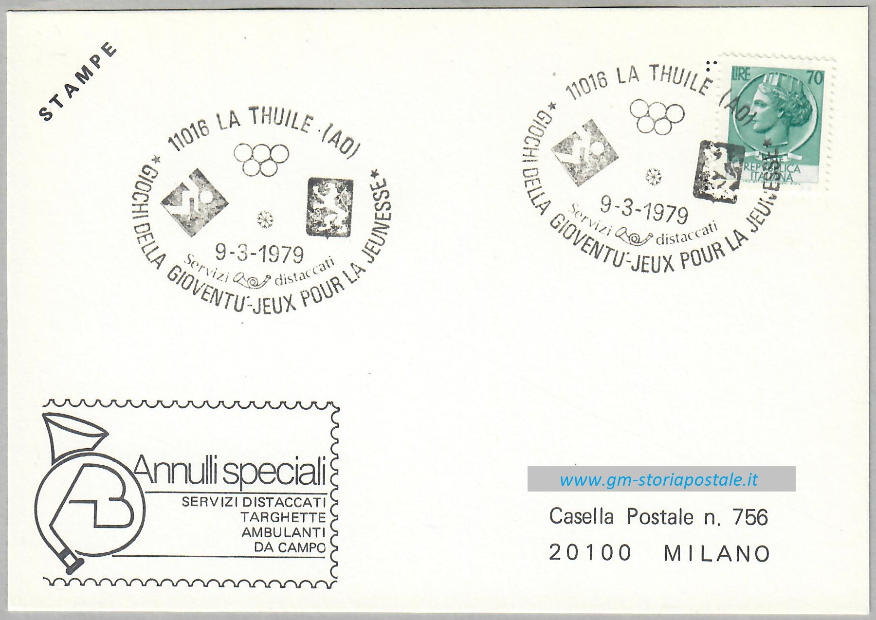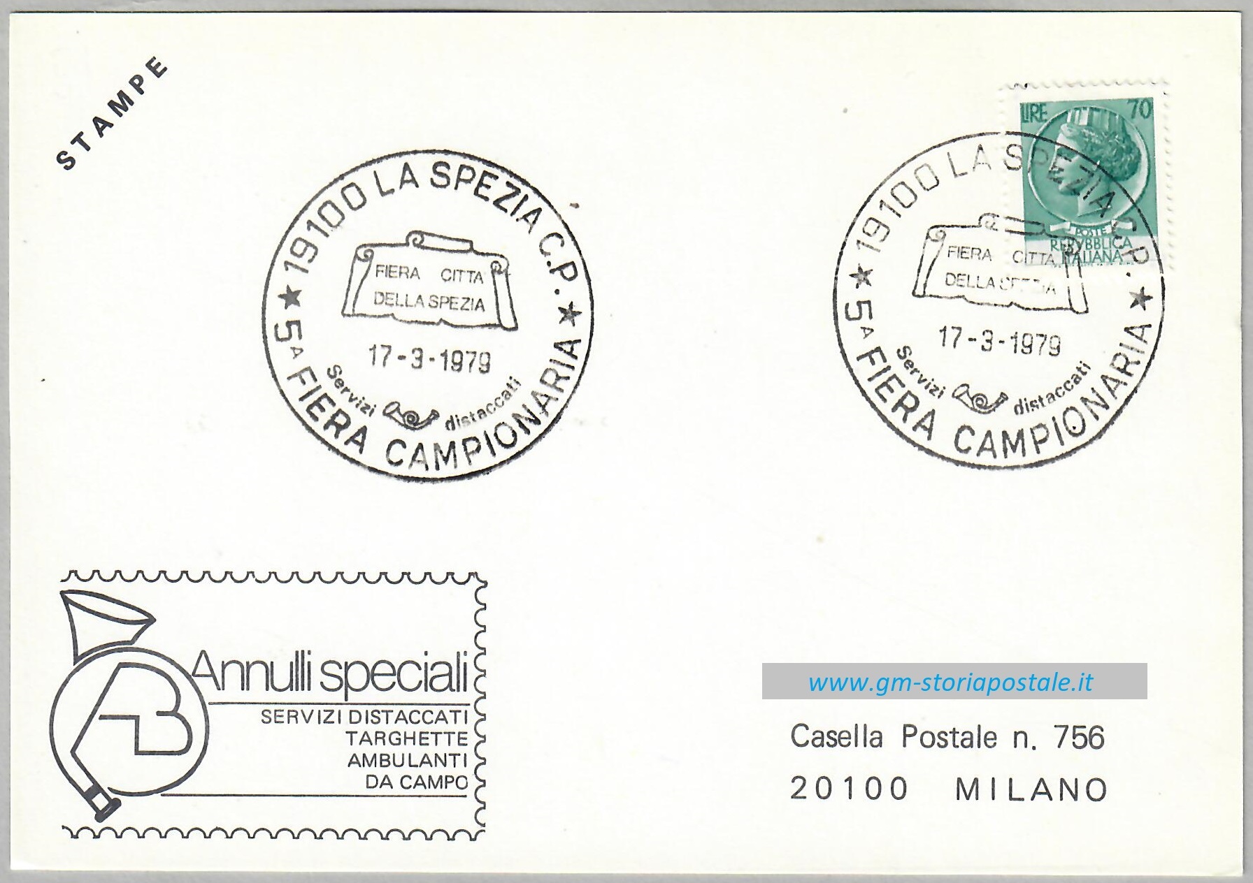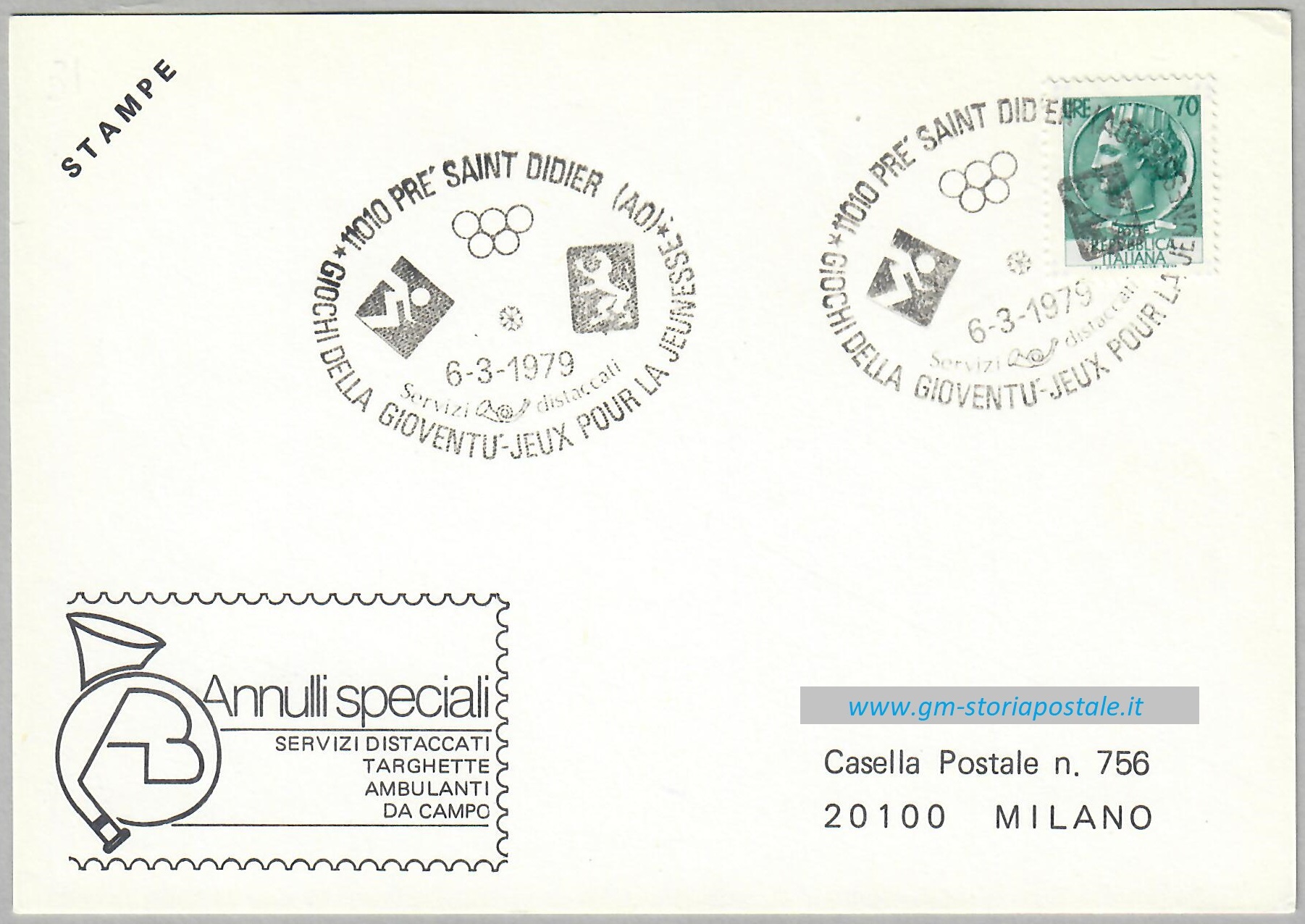 In questa sottopagina si trovano stampe affrancate con il 70 lire Siracusana fluorescente (fluorescenza candida) annullato con un bollo speciale nel marzo 1979.