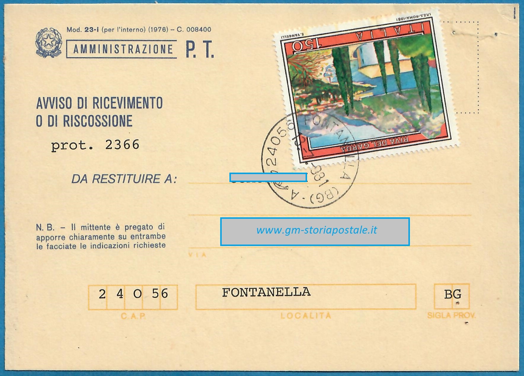 In questa sottopagina della sezione dedicata all’Avviso di Ricevimento si raccolgono, indipendentemente dall’affrancatura e dal periodo tariffario, i moduli editi verso la fine degli Anni ’70 che presentano dal lato dell’affrancatura l’Emblema della Repubblica e la dicitura “Amministrazione P.T.”. Si distinguono da quelli del periodo precedente dall’assenza della dicitura “A.R.”, prima ben evidente in alto a sinistra dal lato dell’affrancatura, e dalla presenza dello Stemma della Repubblica in alto a sinistra dal lato dell’affrancatura.