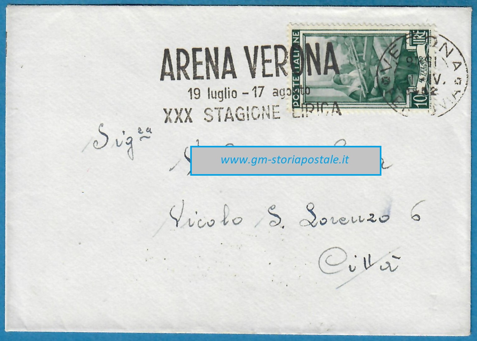 10 lire Italia al Lavoro isolato – annullo con targhetta di Verona, 11 aprile 1952: