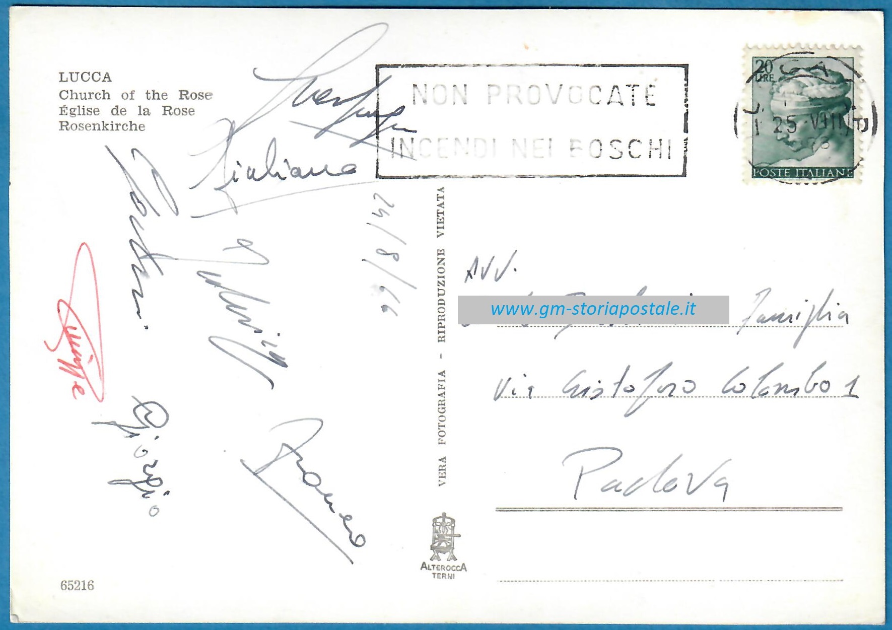 A partire dal 16 agosto 1967 la tariffa ridotta per affrancare una cartolina per l’interno illustrata con testo inferiore alle cinque parole di convenevoli aumentò a 25 lire.