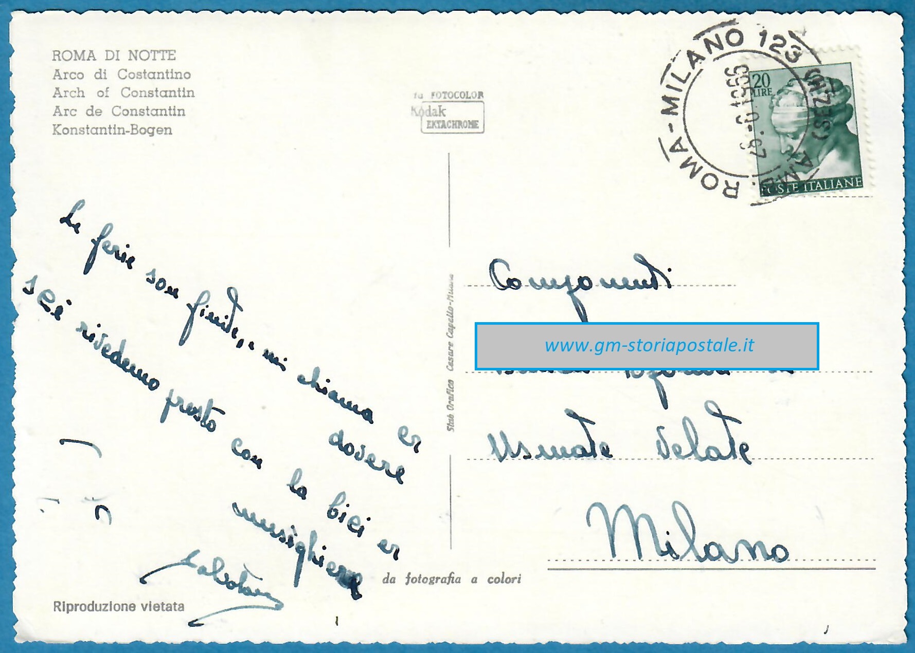 Anche fino al 31 dicembre 1965 la cartolina per l’interno illustrata con testo inferiore alle cinque parole di convenevoli si affrancava con una tariffa ridotta pari a 20 lire.