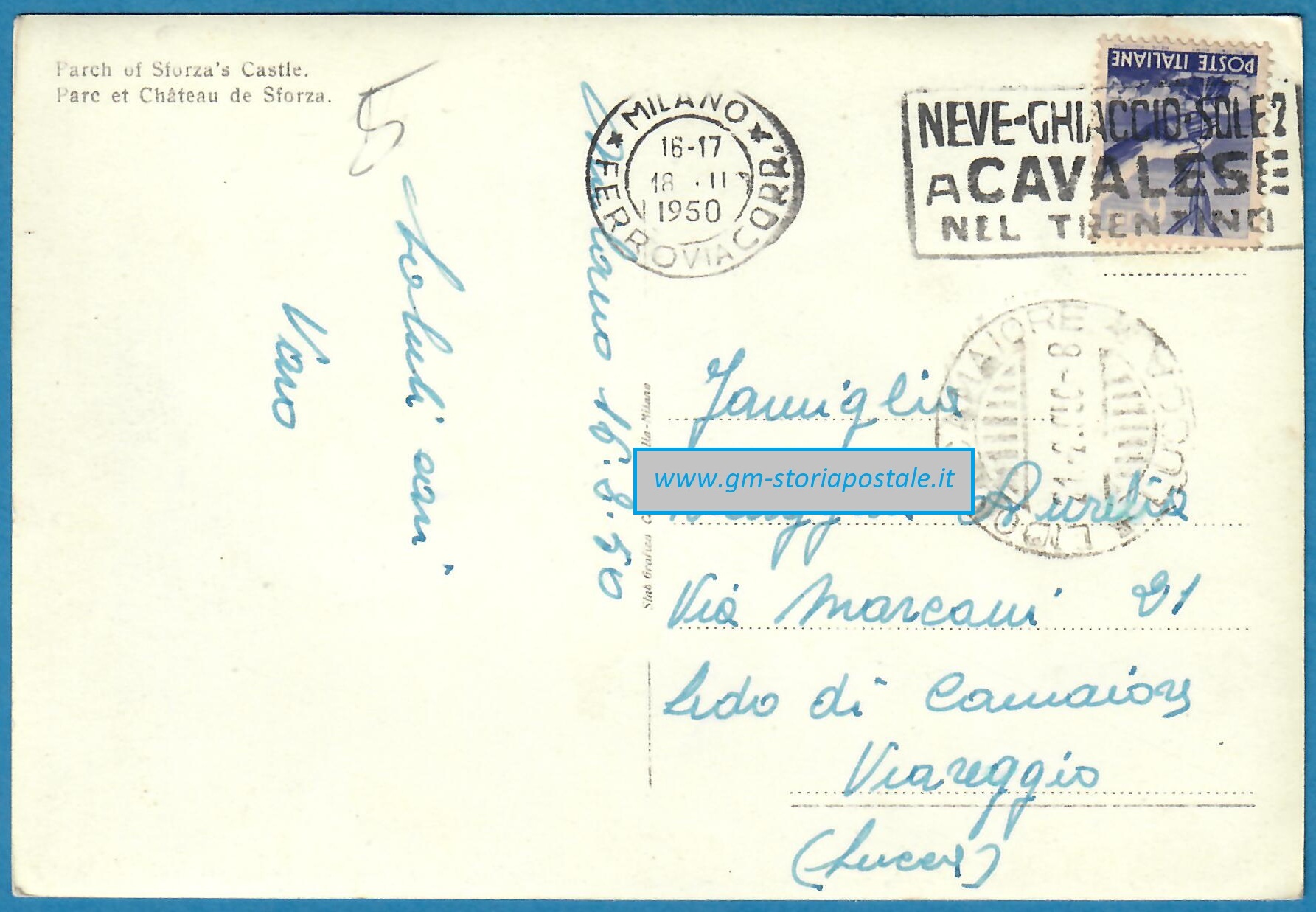 6 lire Italia al Lavoro isolato – annullo con targhetta di Milano, 16 luglio 1951: