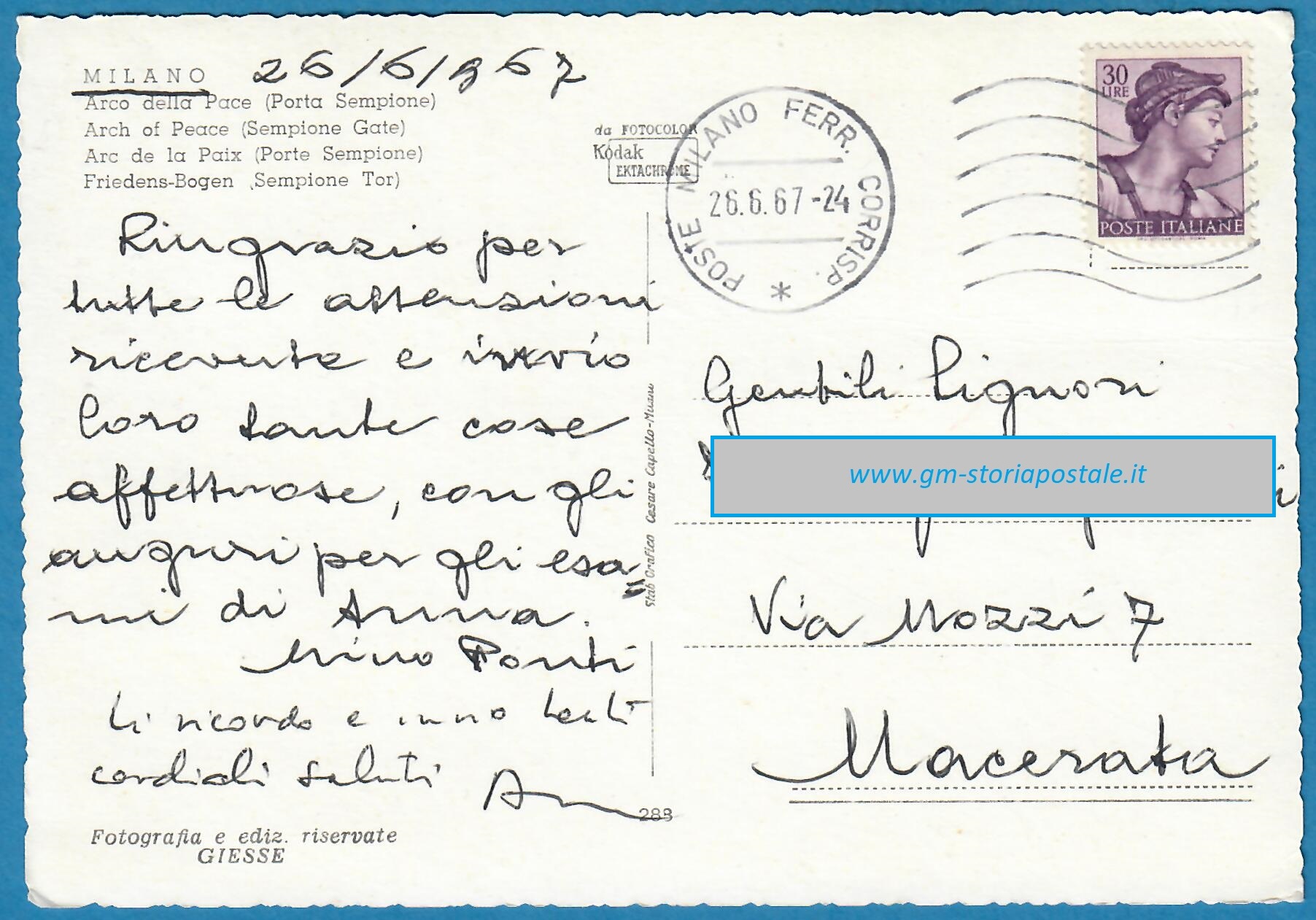 30 lire Michelangiolesca isolato – Milano, 26 giugno 1967: