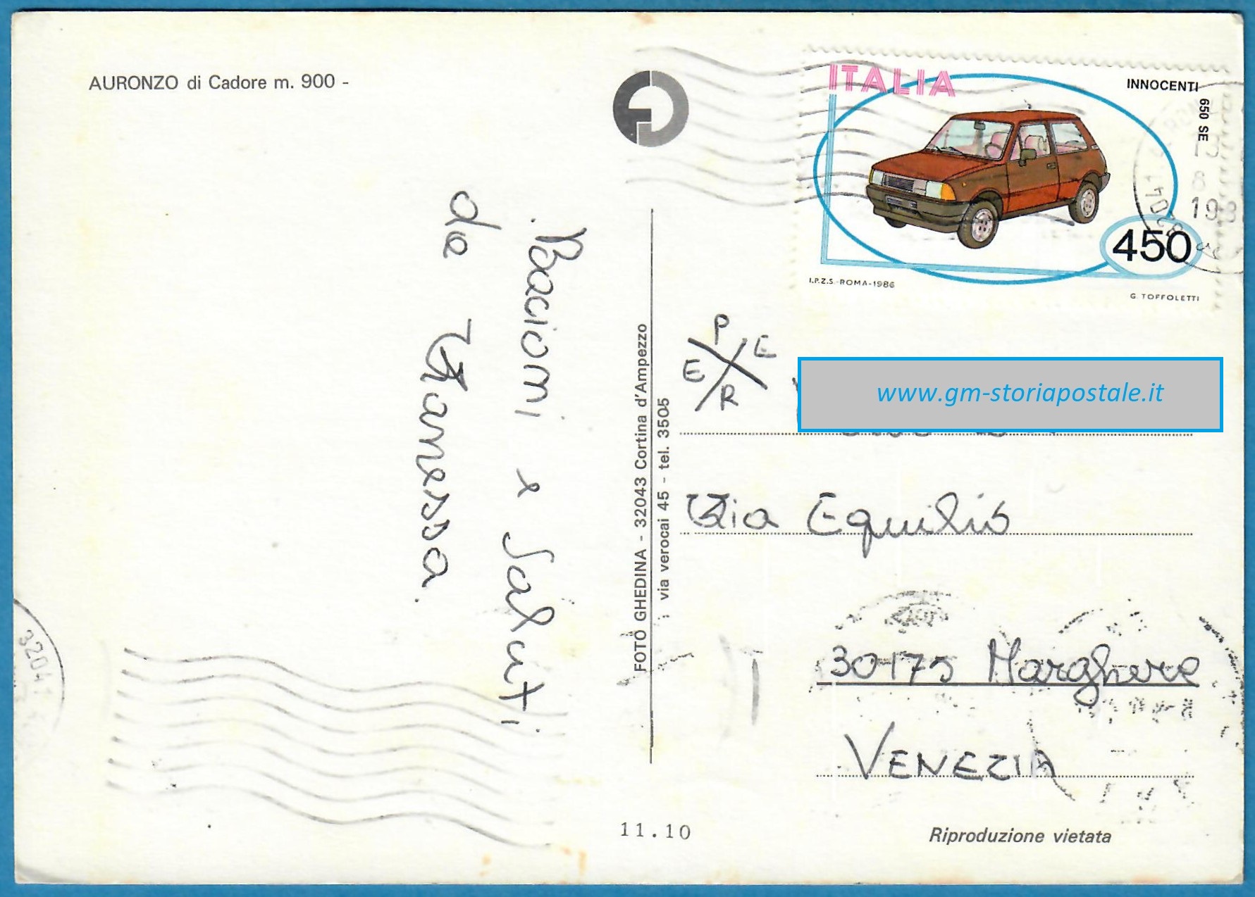A partire dal 16 novembre 1986 la tariffa per affrancare una cartolina per l’interno aumentò a 500 lire.