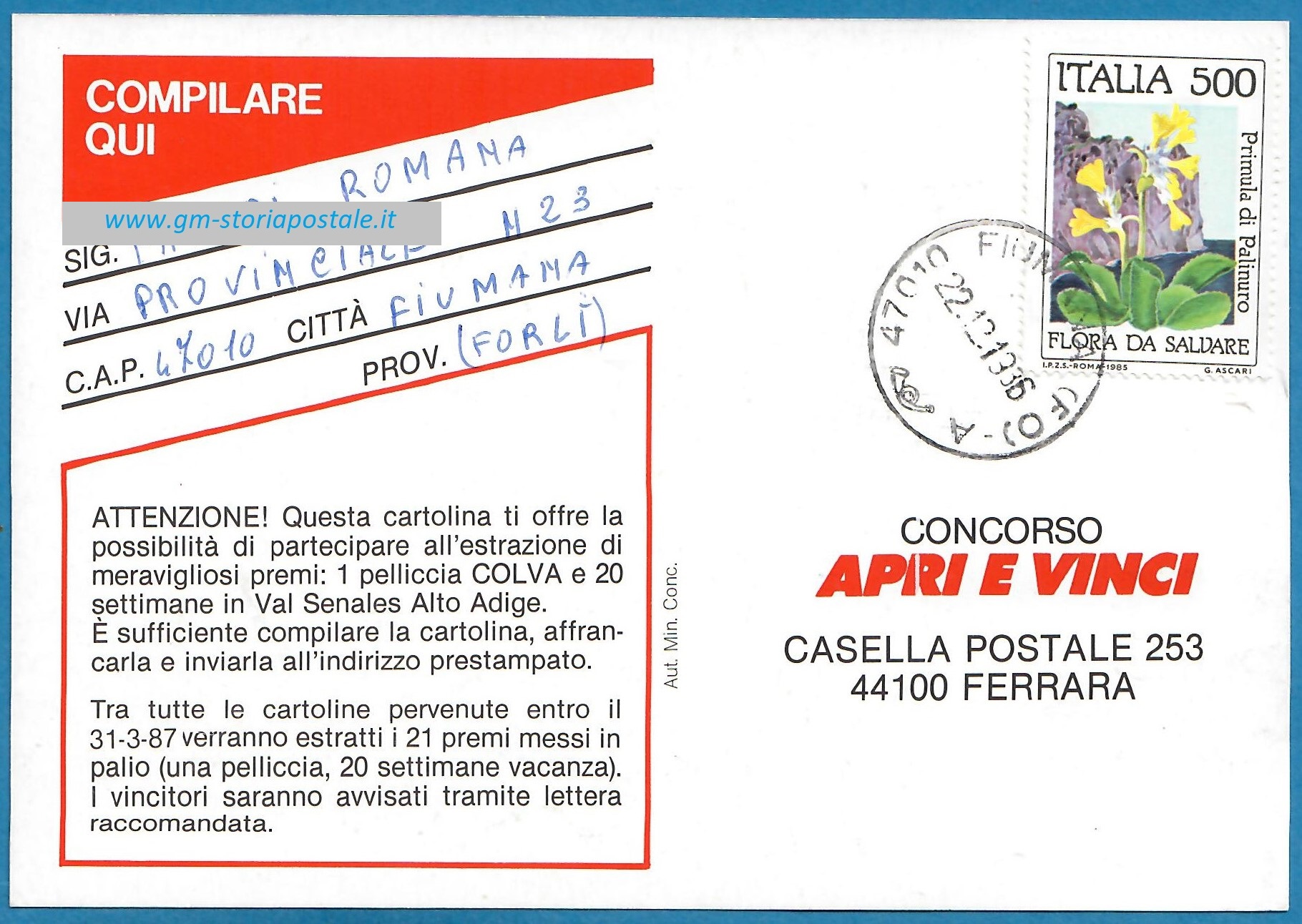 500 lire Primula di Palinuro isolato – Fiumana, 22 dicembre 1986: