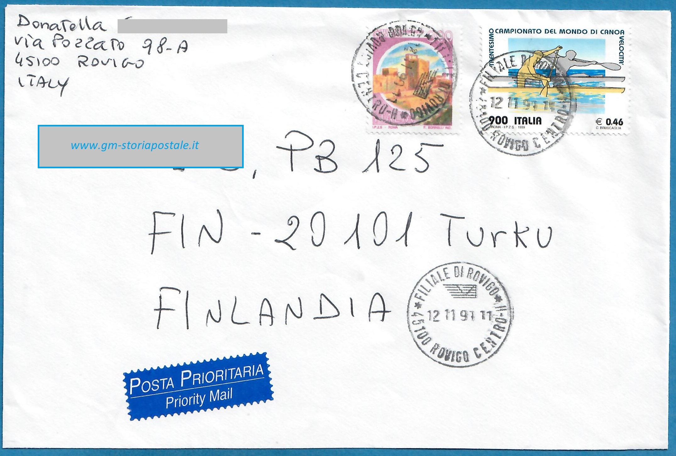 900 lire Campionati del Mondo di Canoa + 300 lire Castelli d’Italia – Rovigo, 12 novembre 1999: