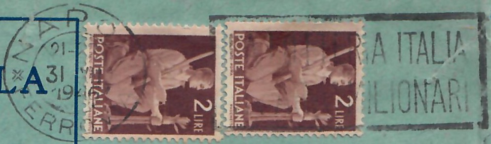 Lettera primo porto fuori distretto affrancata con coppia del 2 lire Democratica – Napoli, 31 dicembre 1946:
