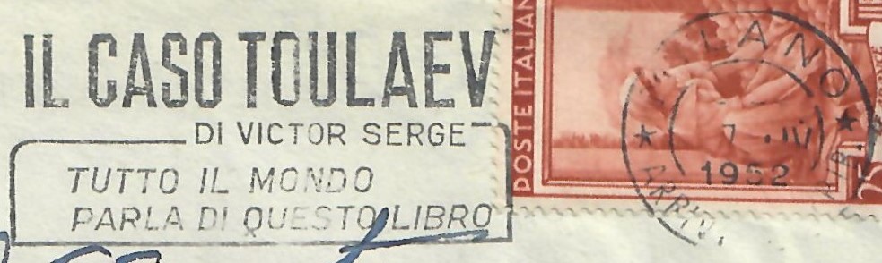 Retro di lettera primo porto affrancata con il 25 lire Cardinale Massaia – Udine, 17 dicembre 1952: