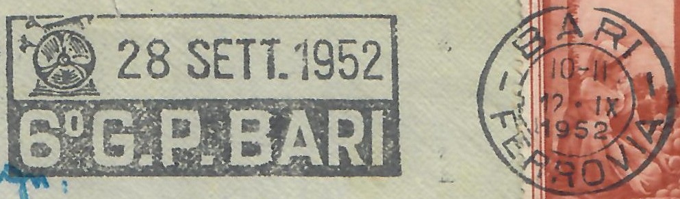 Lettera primo porto affrancata con il 25 lire Italia al Lavoro – Bari, 12 settembre 1952:
