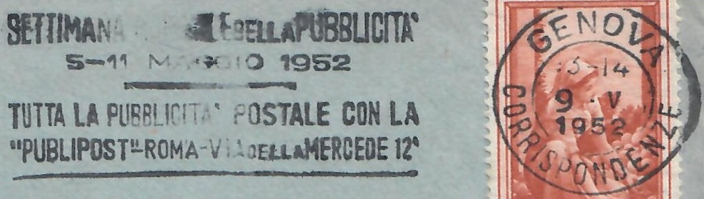 Lettera primo porto affrancata con il 25 lire Italia al Lavoro – Genova, 9 maggio 1952: