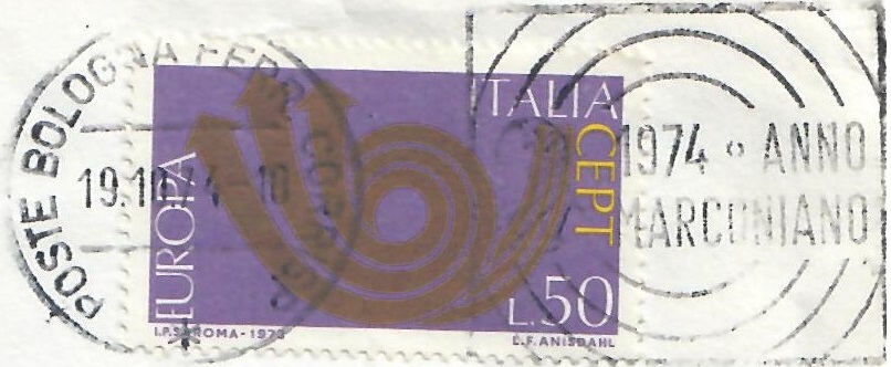 Lettera primo porto affrancata con il 50 lire Europa 1973– Bologna, 19 ottobre 1974: