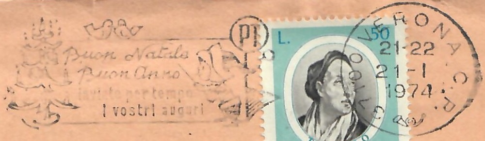 Lettera primo porto affrancata con il 50 lire Giambattista Tiepolo – Verona, 21 gennaio 1974: