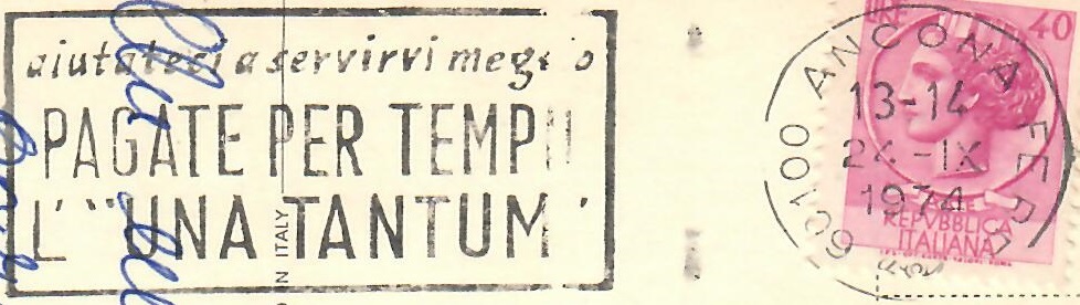 Cartolina affrancata con il 40 lire Siracusana fluorescente – Ancona, 24 settembre 1974: