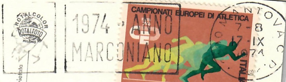 Cartolina affrancata con il 40 lire Campionati Europei di atletica – Mantova, 17 settembre 1974: