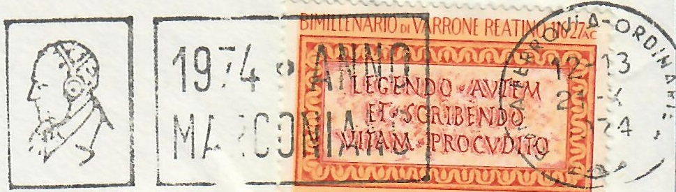 Lettera primo porto affrancata con il 50 lire Marco Terenzio Varrone – Roma, 21 ottobre 1974: