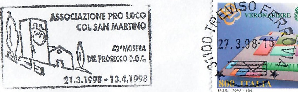 Lettera primo porto affrancata con l’800 lire Fiera di Verona – Treviso, 27 marzo 1998: