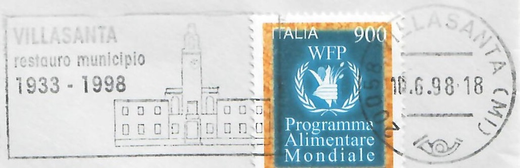 Lettera per l’estero affrancata con il 900 lire Programma Alimentare Mondiale – Villasanta, 10 giugno 1998: