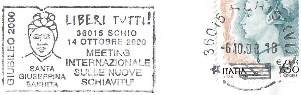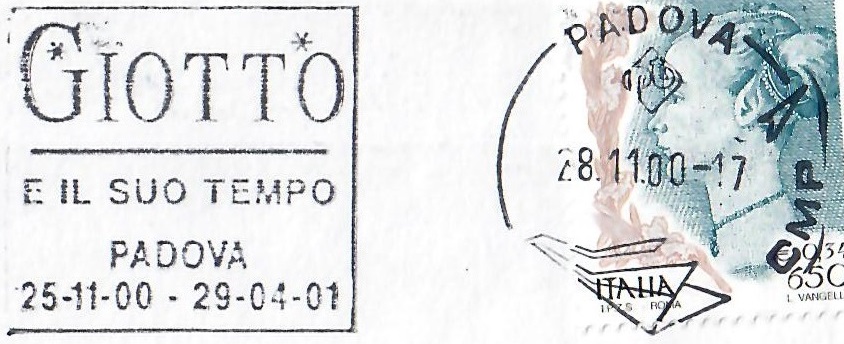 Stampe dirette fuori città affrancate con il 650 lire Donna nell’Arte (lire/euro) – Padova, 28 novembre 2000: