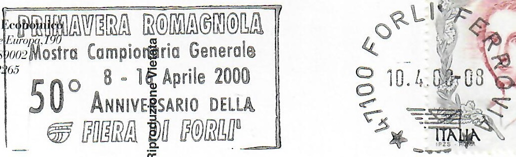 Corriere Ordinario affrancato con 800 lire Donna nell’Arte lire/euro – Forlì, 10 aprile 2000: