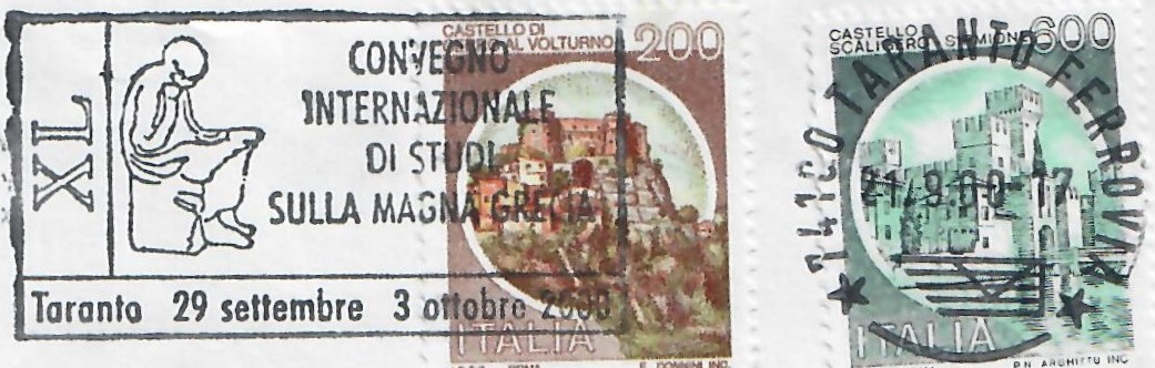 Corriere ordinario affrancato con il 600 lire Castelli d’Italia + 200 lire – Taranto, 21 settembre 2000: