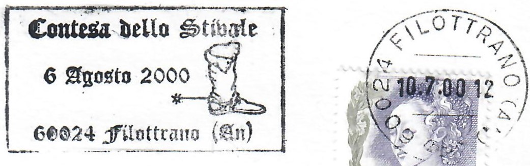 Cartolina senza testo affrancata con il 450 lire Donna nell’Arte (lire/euro) viaggiata come stampe per la città – Filottrano, 10 luglio 2000:
