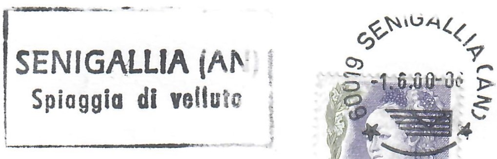 Cartolina senza testo affrancata con il 450 lire Donna nell’Arte (lire/euro) viaggiata come stampe per la città – Senigallia, 1° giugno 2000: