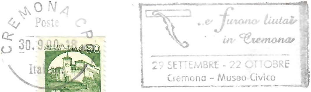 Cartolina senza testo affrancata con il 450 lire Castelli d’Italia bobina viaggiato come stampe per la città – Cremona, 30 settembre 2000: