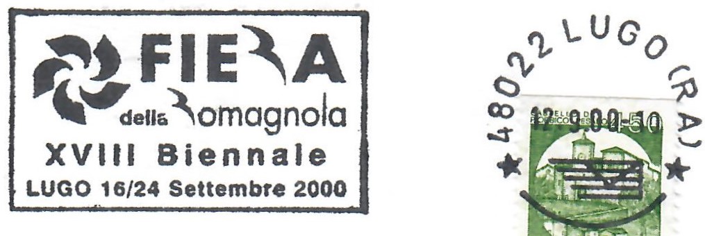 Cartolina senza testo affrancata con il 450 lire Castelli d’Italia bobina viaggiato come stampe per la città – Lugo, 12 settembre 2000: