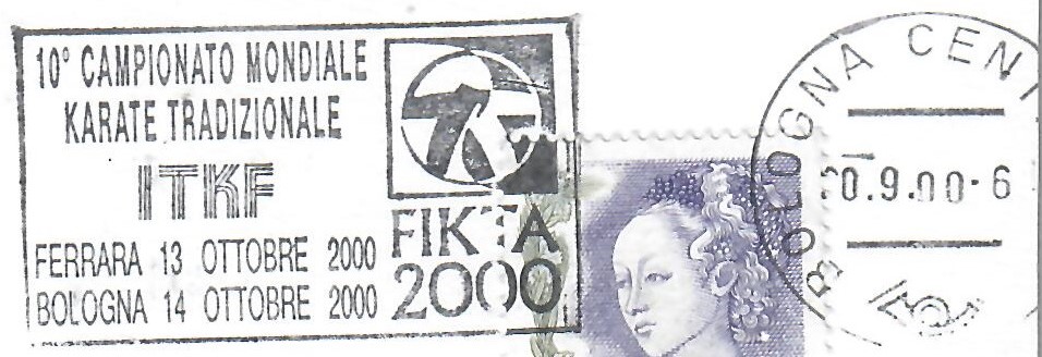 Cartolina senza testo affrancata con il 450 lire Donna nell’Arte (lire/euro), viaggiata come stampe per la città – Bologna, settembre 2000: