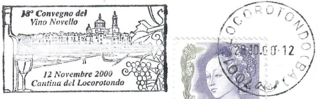 Cartolina senza testo affrancata con il 450 lire Donna nell’Arte (lire/euro) viaggiata come stampe per la città – Locorotondo, 28 ottobre 2000:
