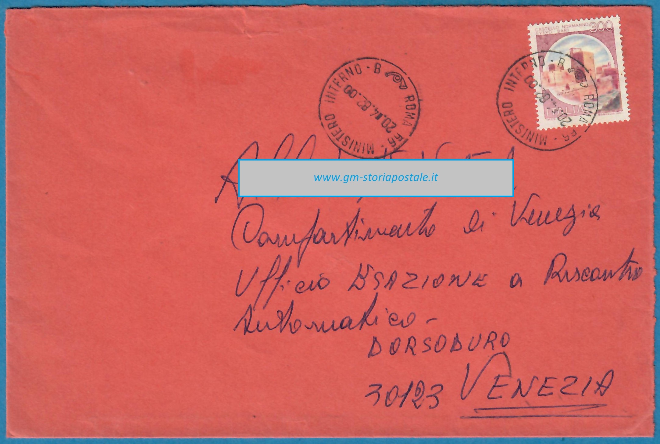 Roma, dicembre 1997 – lettera primo porto affrancata con l’800 lire Polizia Stradale: