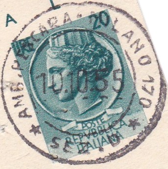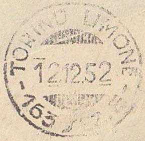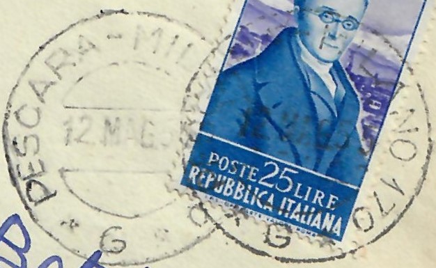 Usato per annullare il 25 lire Silvio Pellico su una lettera primo porto, 12 maggio 1955: