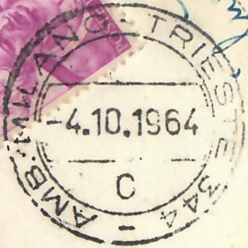 Usato per annullare il 15 lire Michelangiolesca su una cartolina illustrata entro cinque parole, 4 ottobre 1964: